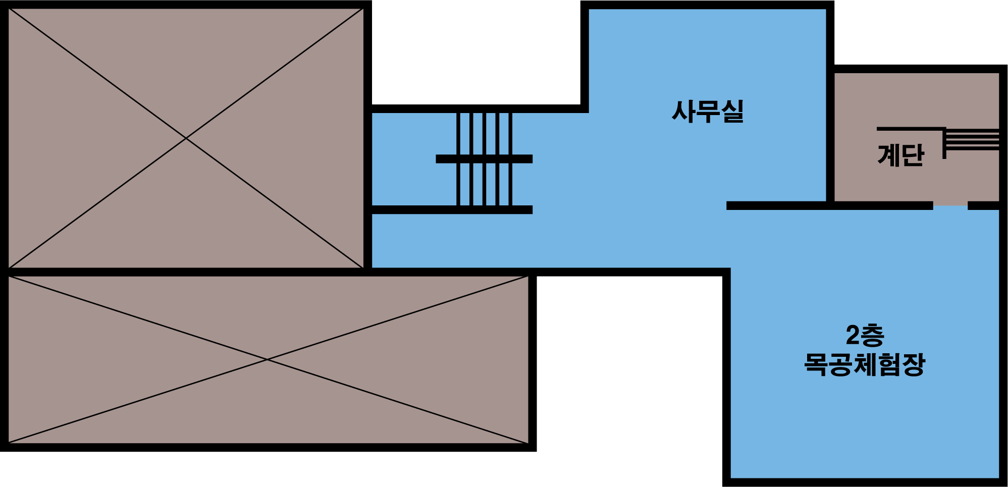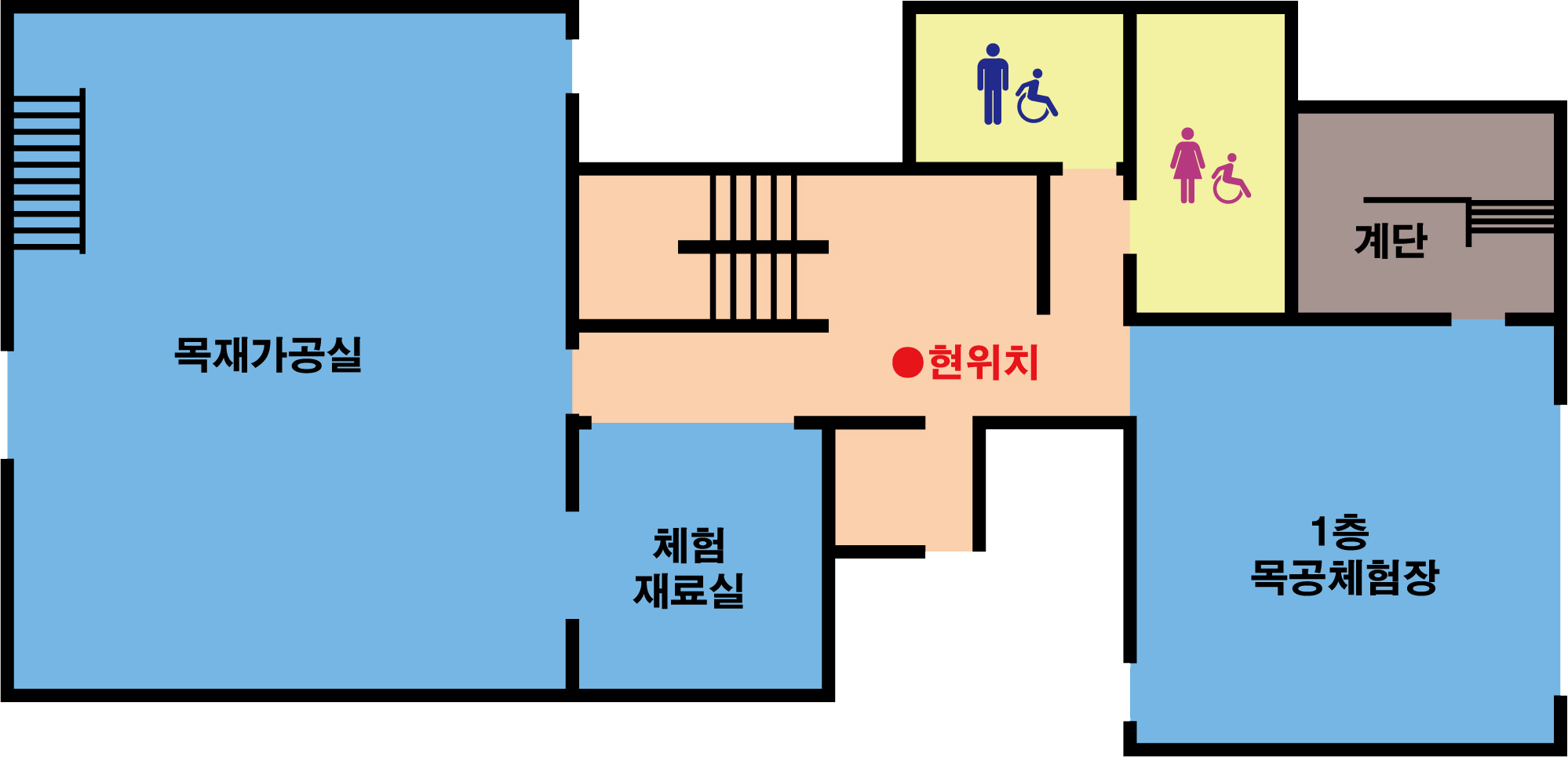 1층 목재문화체험장 · 목공품 전시장 · 목재 재단실